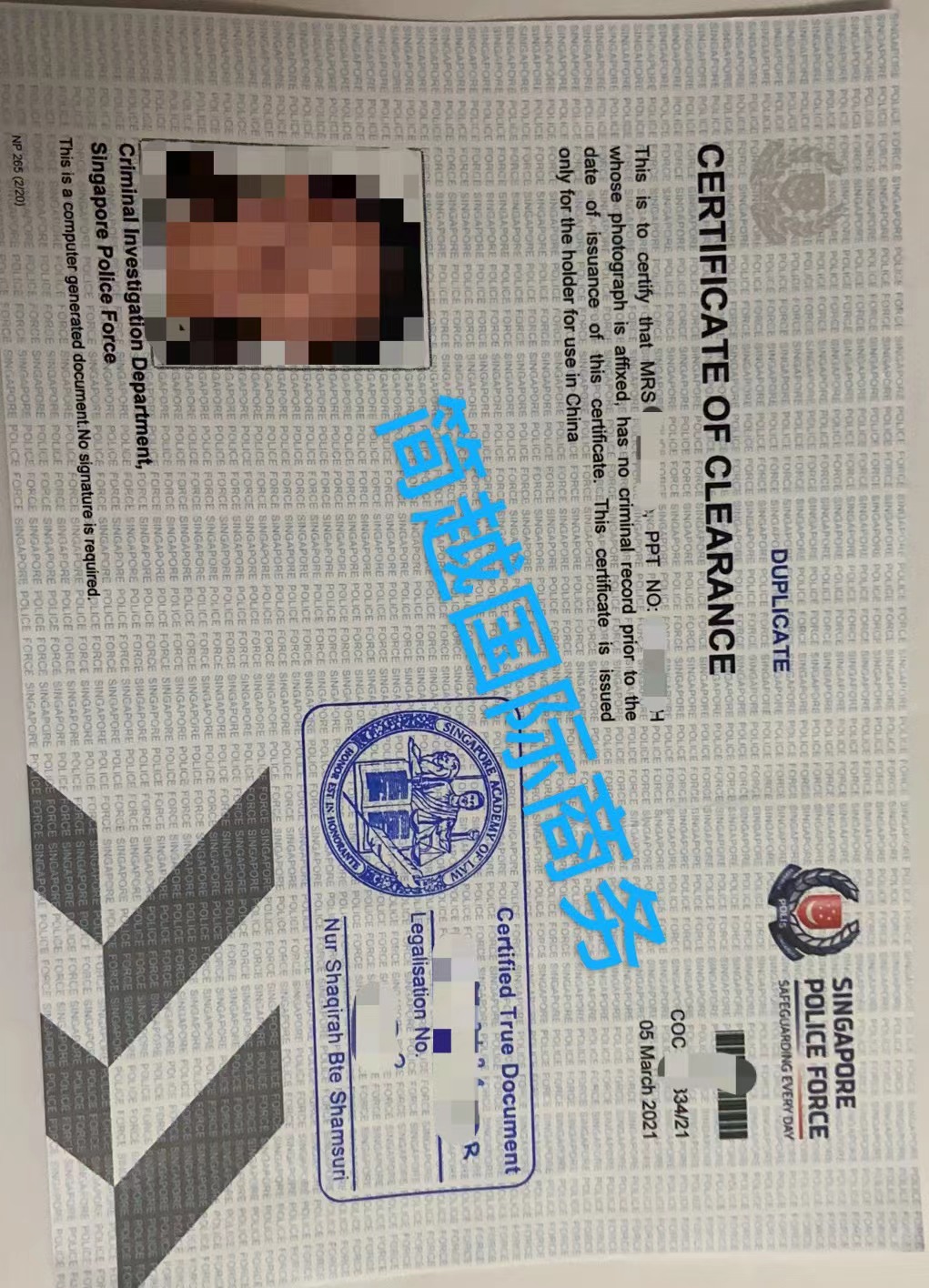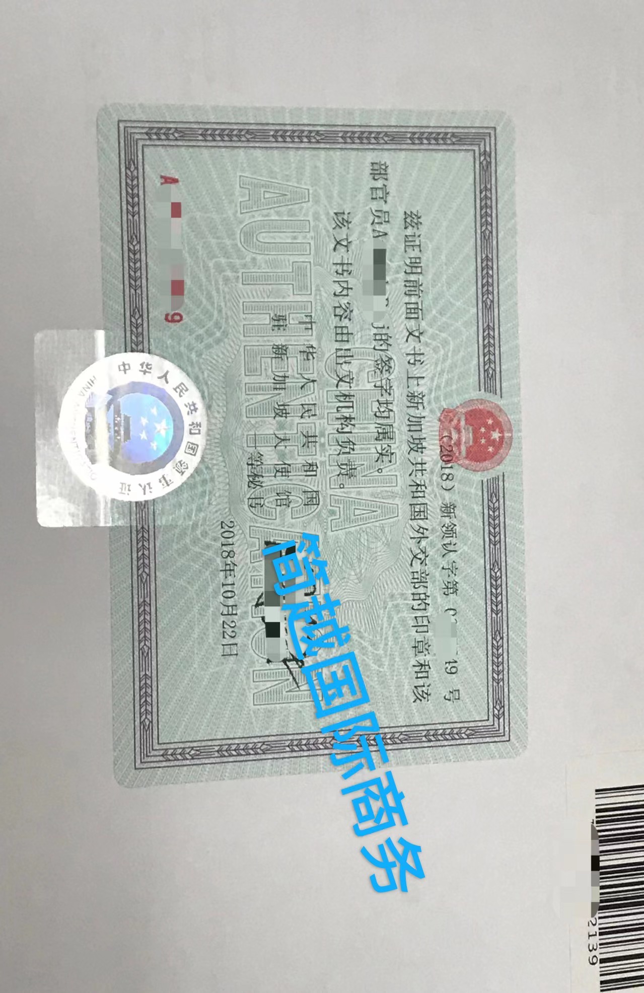 駐新加坡領(lǐng)事認證